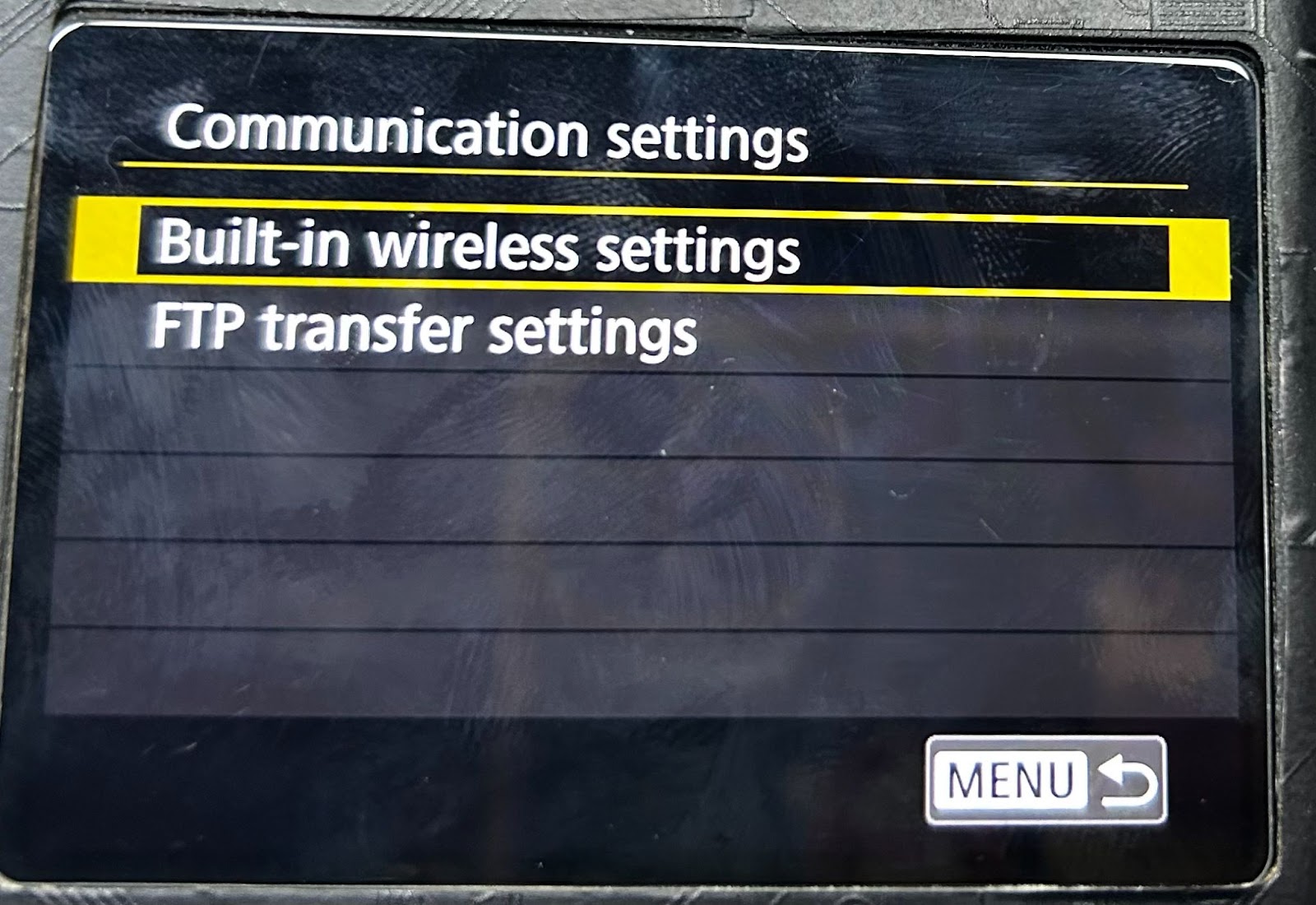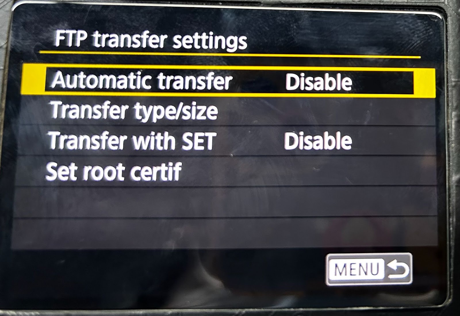 Also you should turn off the camera "FTP transfer settings” > “Automatic transfer", turn off "Communication settings” > “Built-in wireless settings” > “WIFI/NFC."