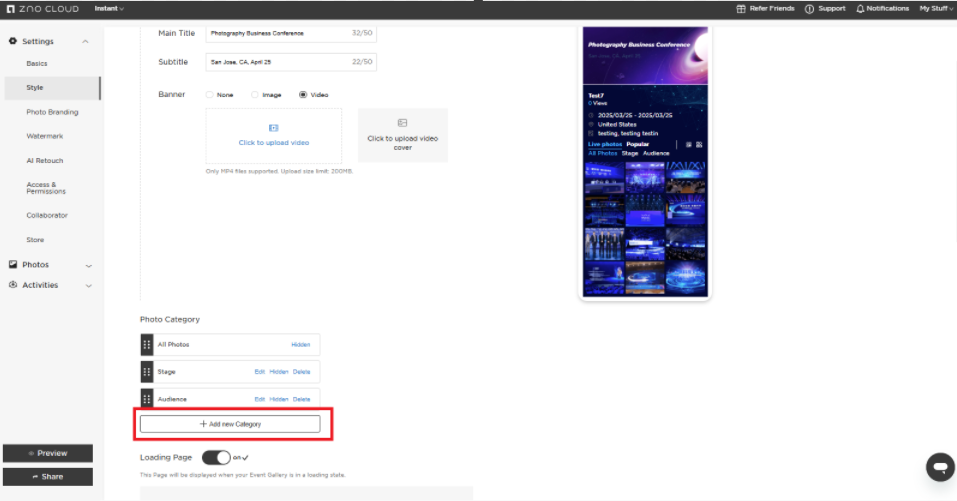 It is recommended to add multiple Photo Categories so your clients have a better browsing experience.