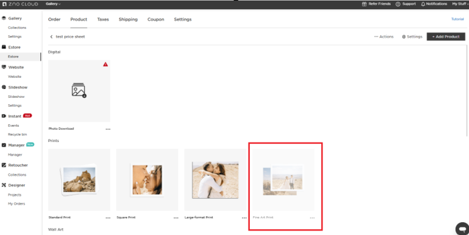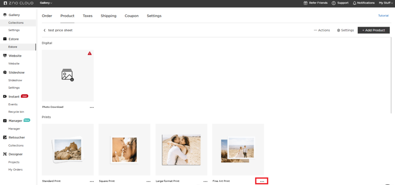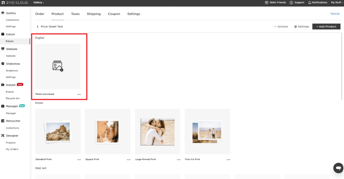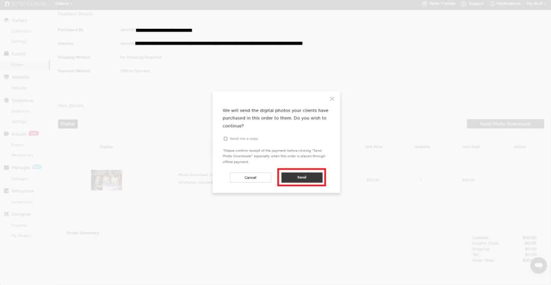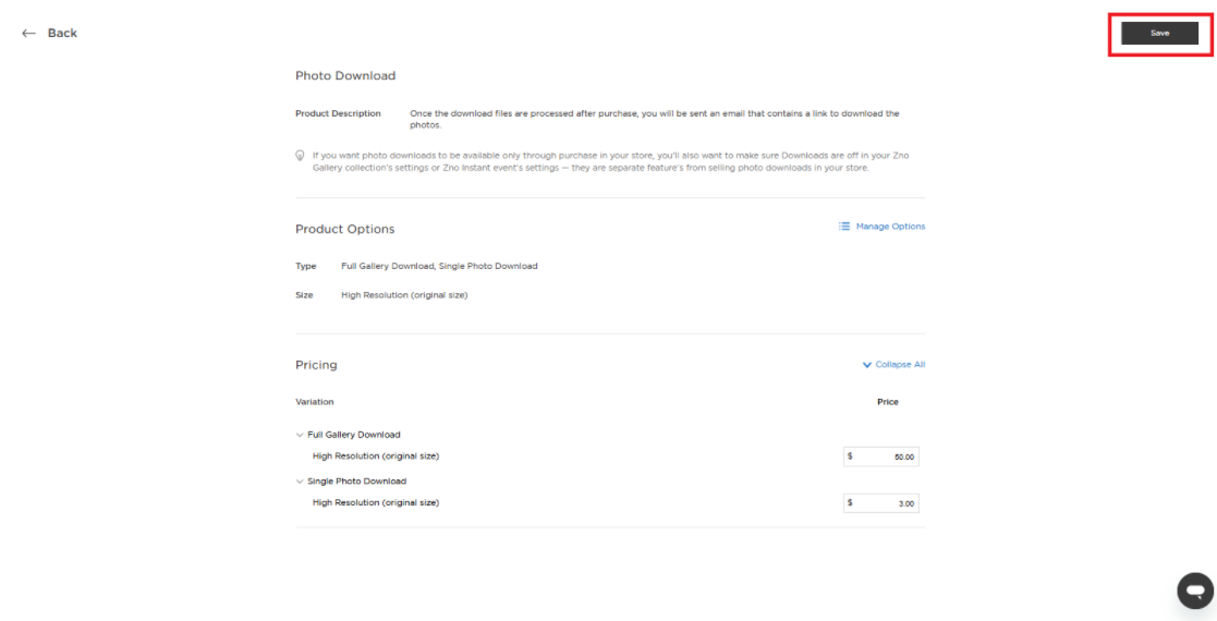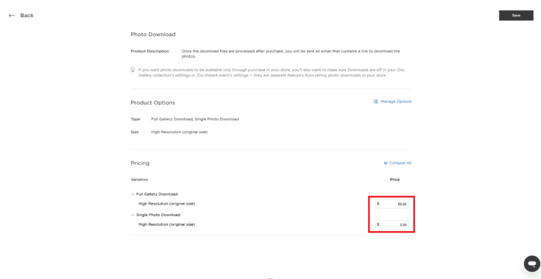 Puedes convertir tu Galería Instantánea de ZNO en un carrito de compras donde tus clientes puedan adquirir descargas, impresiones u otros productos.