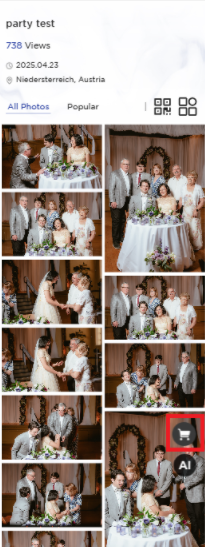 Cuando tus clientes accedan a su Galería Instantánea de ZNO, verán un ícono de carrito de compras.