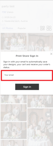 Cuando hagan clic en el ícono del Carrito de Compras, se les pedirá ingresar su dirección de correo electrónico.