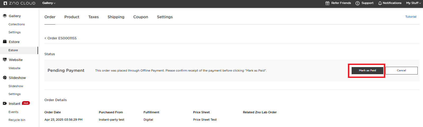 Nota: Si tu cliente elige pago offline, deberás ingresar a tu E-store después de recibir el pago y marcar el pedido como Pagado.