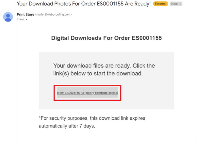 Una vez que los archivos estén listos, tu cliente recibirá un correo electrónico con un enlace para descargar sus archivos.