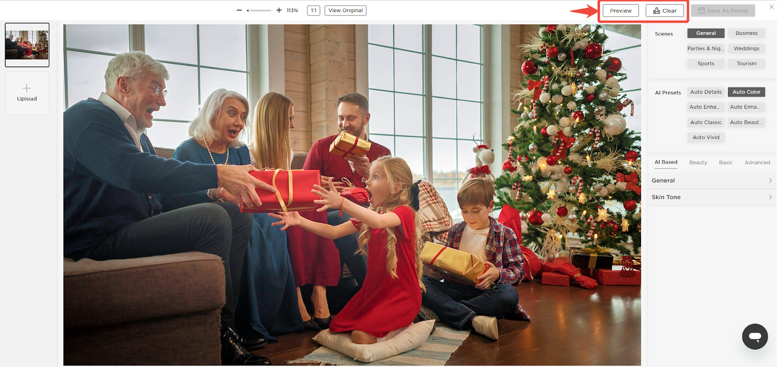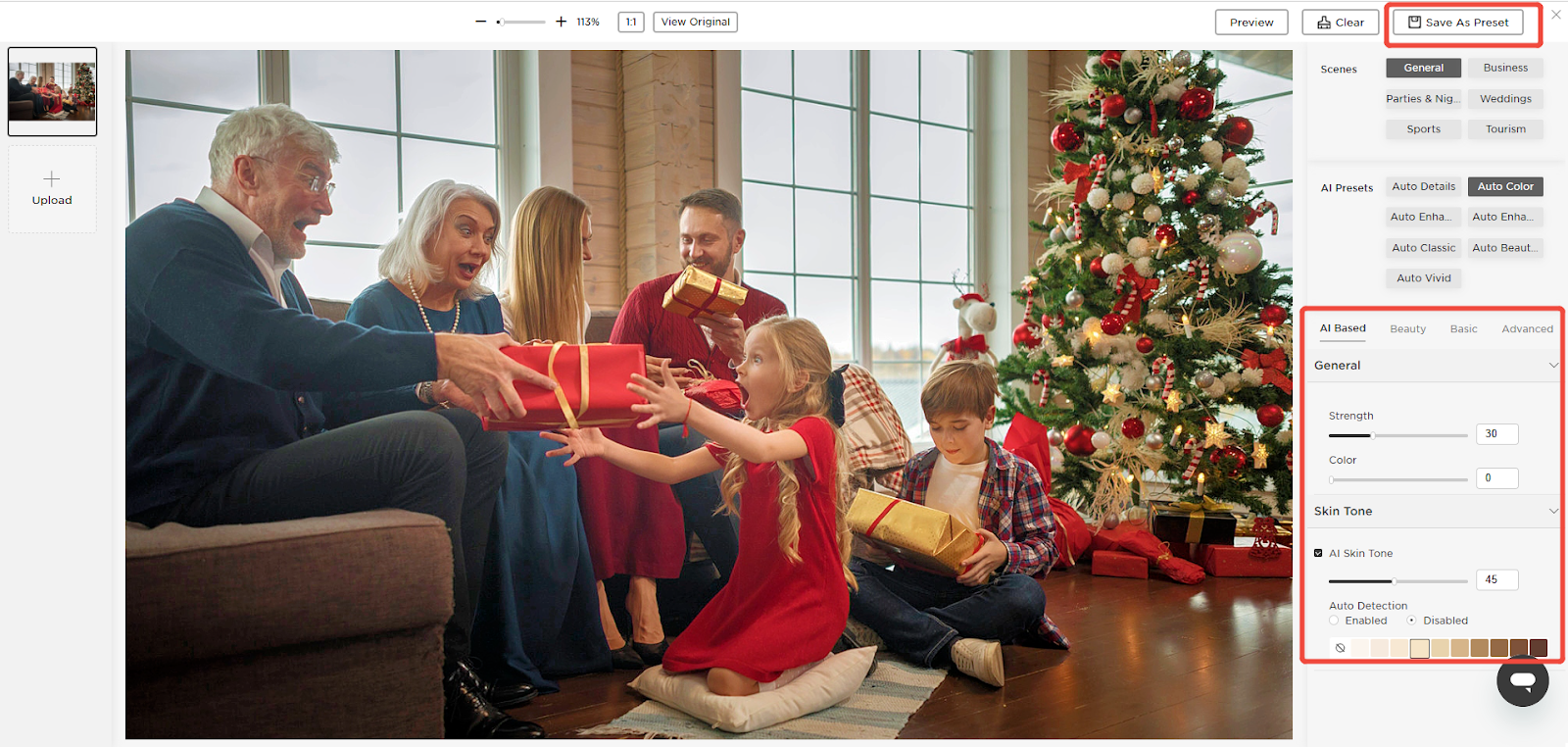 Puedes ver que el tono de la foto es más brillante que antes. Por supuesto, si deseas ajustar parámetros más personalizados más allá de nuestros pre ajustes predeterminados, puedes realizar ediciones más detalladas en la Sección 2.