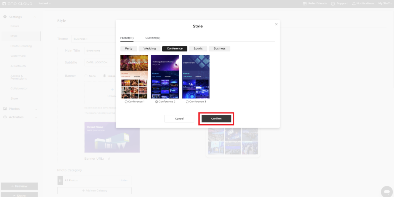 En la ventana emergente, activa el preset que deseas y haz clic en Confirmar.