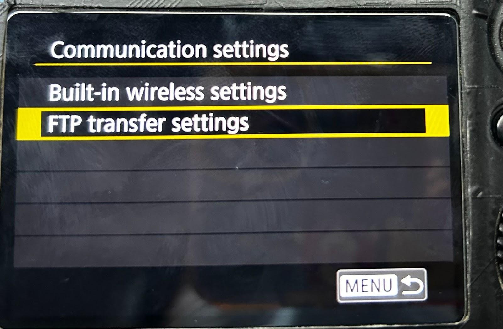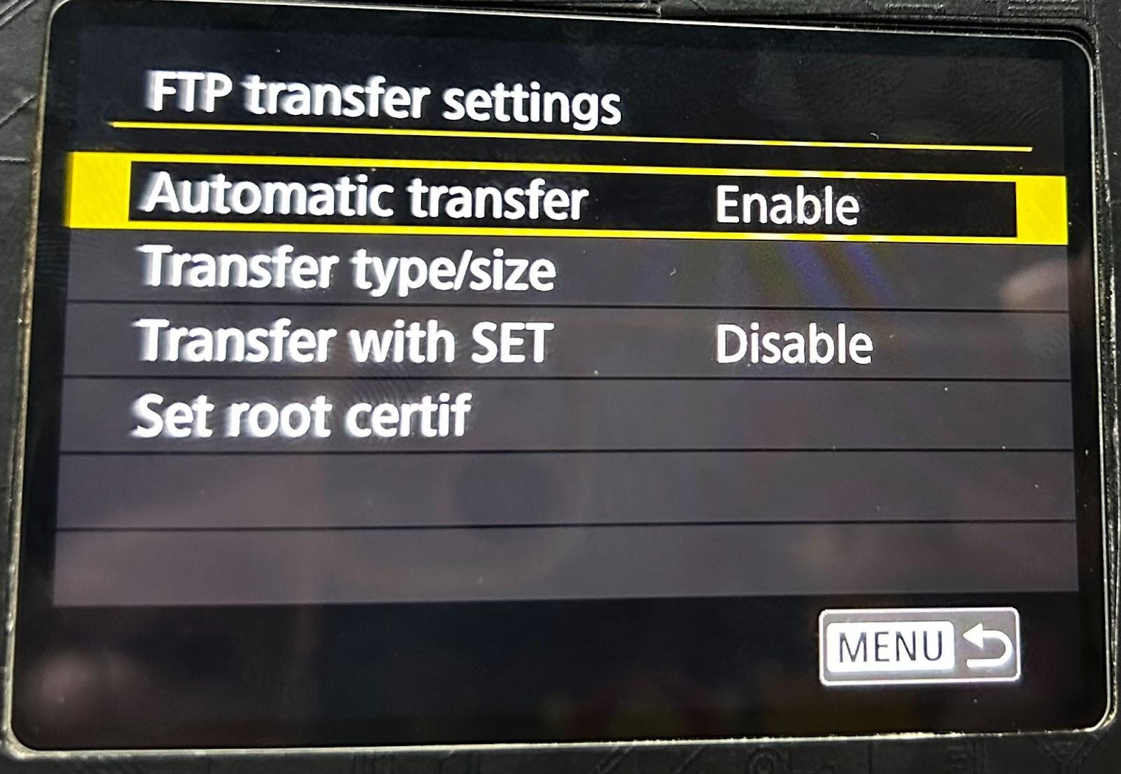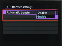(2) Posibilidad 2: La “Transferencia automática” de la cámara Canon está desactivada, por lo que necesitas seleccionar manualmente FTP para subir las imágenes.