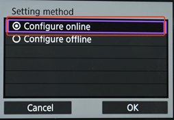 - Regresa a los menús anteriores y selecciona “Conexión Wi-Fi/Bluetooth”. Ve a la página 2 para seleccionar “Transferir imagen al servidor FTP”. Selecciona “Agregar un dispositivo para conectar” y selecciona "Configurar en línea".