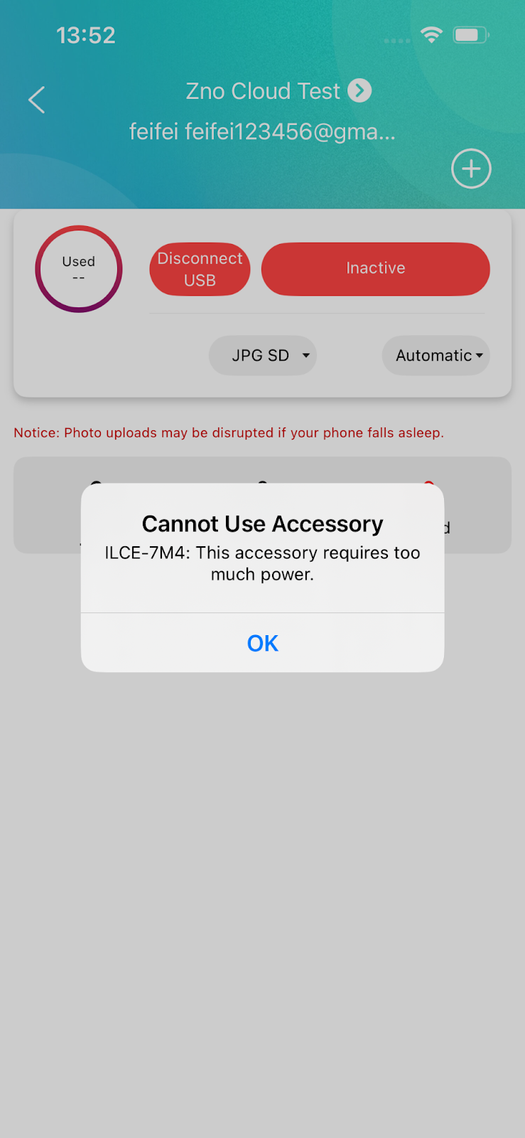5. ¿Qué hago si mi teléfono muestra que los accesorios no son compatibles cuando uso la app Zno Instant?