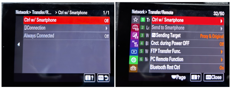 - Configurar: “Red” > “Transferencia / Remoto” > “Transferencia / Remoto” > desactivar “Ctrl w / Smartphone”.