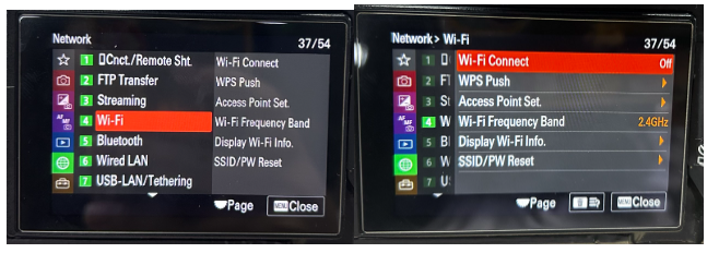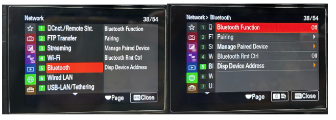 - El Bluetooth, WiFi y FTP de la cámara deben estar desactivados (ignora este paso si no existe esta configuración en tu cámara).